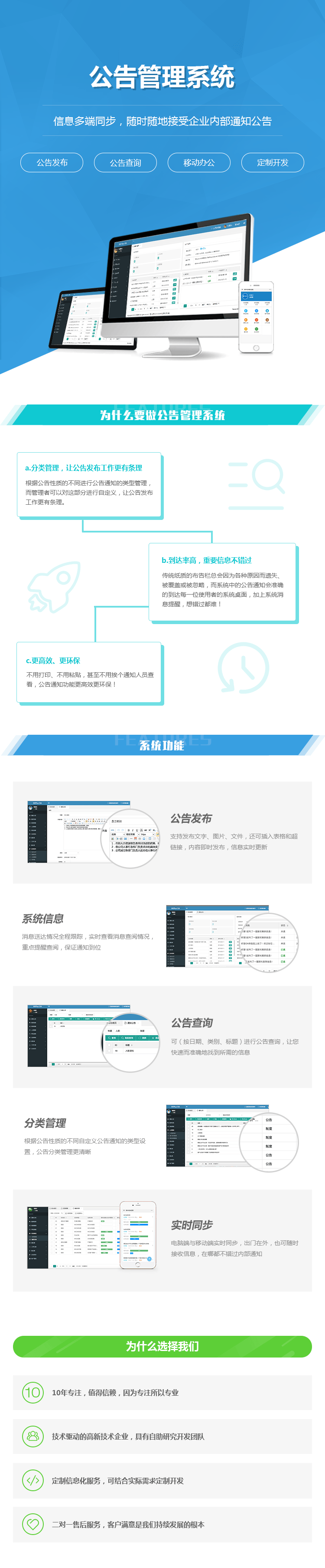 公告管理系统,集中发布新闻、通知、公告、制度等,帮助员工即时了解企业的发展动态;支持快速查找全流程驱动,信息审核后自动发布,支持图文和视频混排,使公告发布工作更有条理。